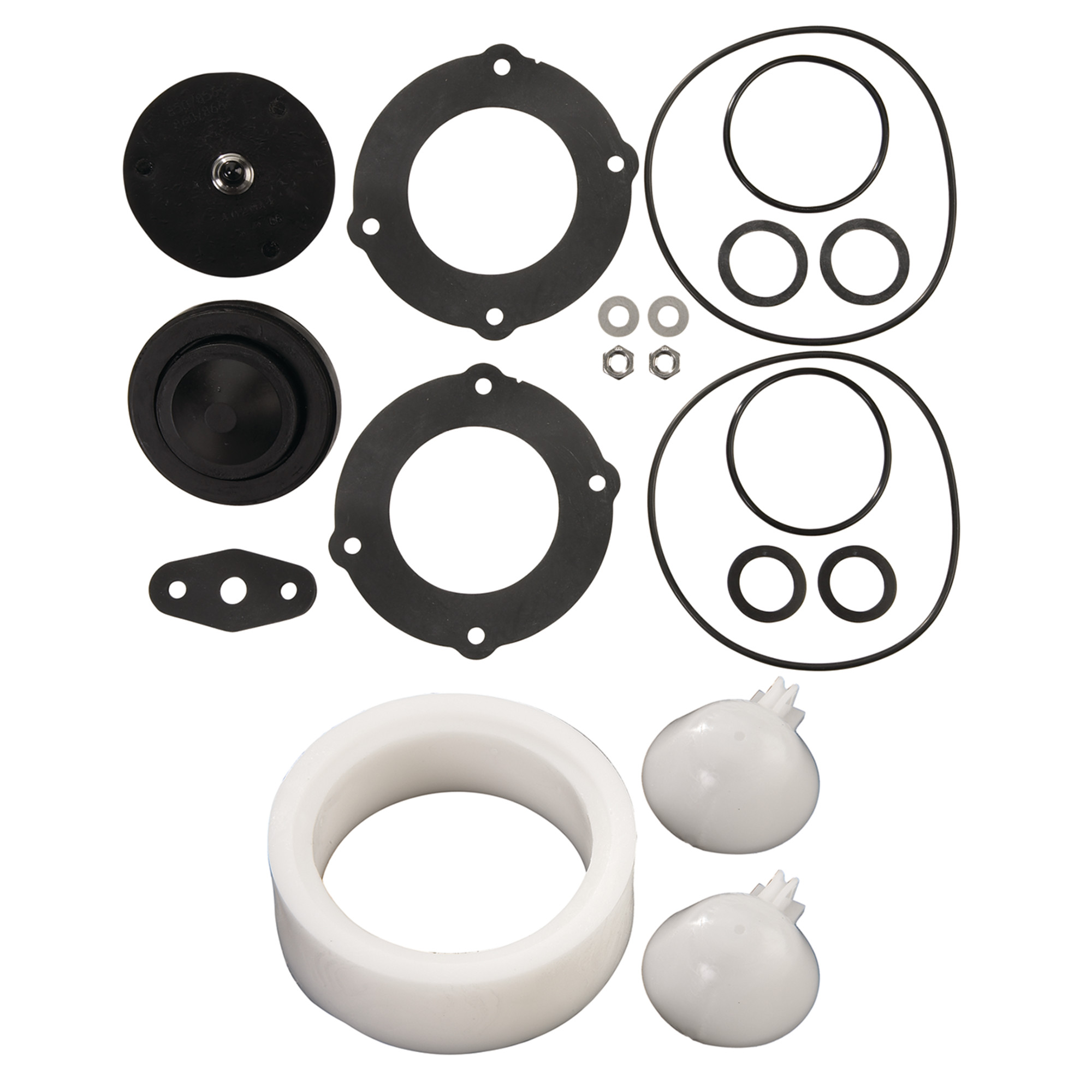 This rubber parts kit includes all the parts necessary to repair or replace all rubber parts required for the check of a 2 1/2 and 3 inch reduced pressure zone assembly, series 860. This kit consists of all parts necessary to repair the check disc assembly of the applicable valves. All parts are genuine and original to the valve.