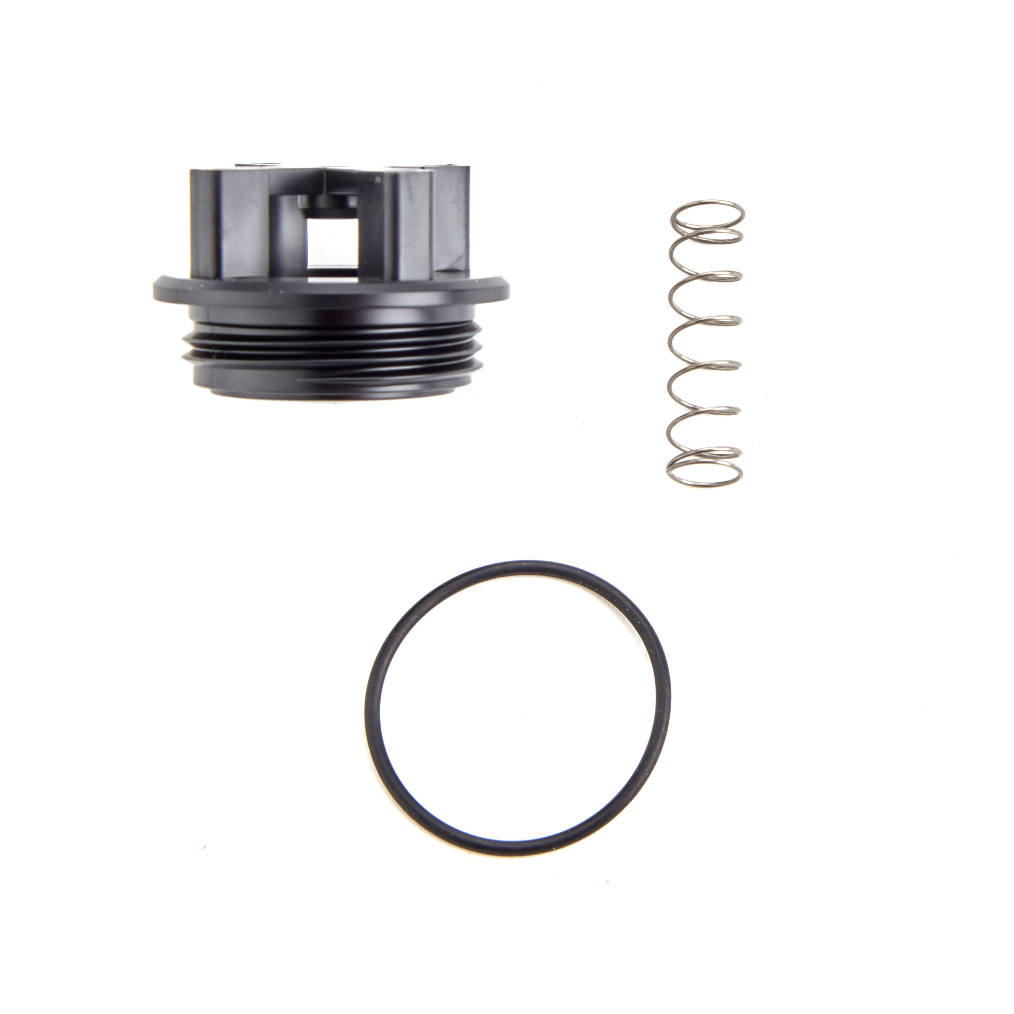 This 3/8-1/2 IN backflow preventer bonnet repair kit, series 008, is used to prevent the reverse flow of polluted water from entering into the potable water supply due to backsiphonage on indoor point-of-use applications. It consists of a bonnet, bonnet O-ring and vent spring. It is ideal for indoor use on machines or equipment in general plumbing applications.